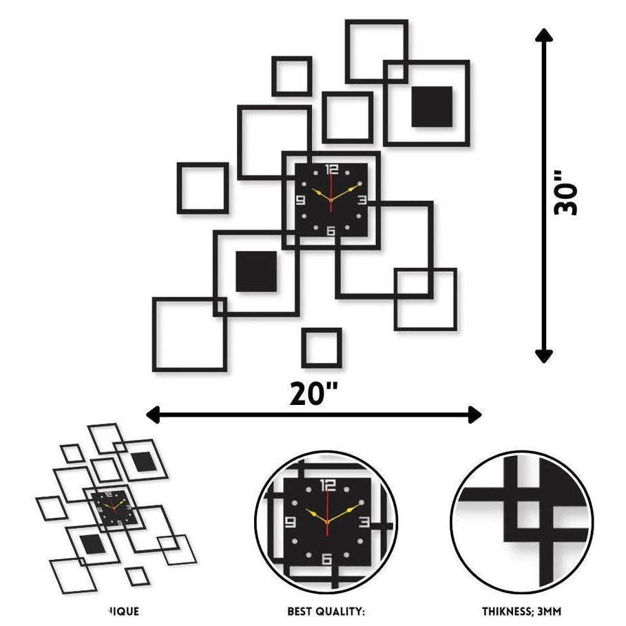 • Size: 30X20 Inches (Aprov) After Installation• Material: Chipboard Laminated Sheet• Thickness 3Mm• Color: Black• Complete Box Pack• All Pieces Stick On Wall With Double Tape• We'Ll Provide Double Along The Package• Came In Piece Diy Clock, Much Easy To Install